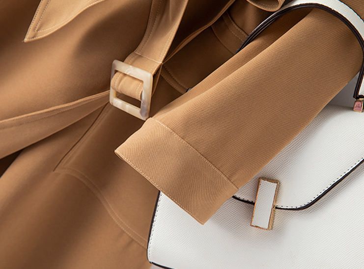 Large size French casual windbreaker 2024 fashion temperament slim waist long coat for women