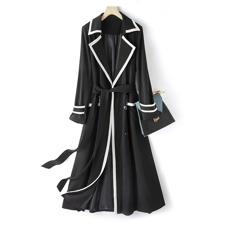 Retro French large size trench coat, 2024 temperament Hepburn style slim long coat for women